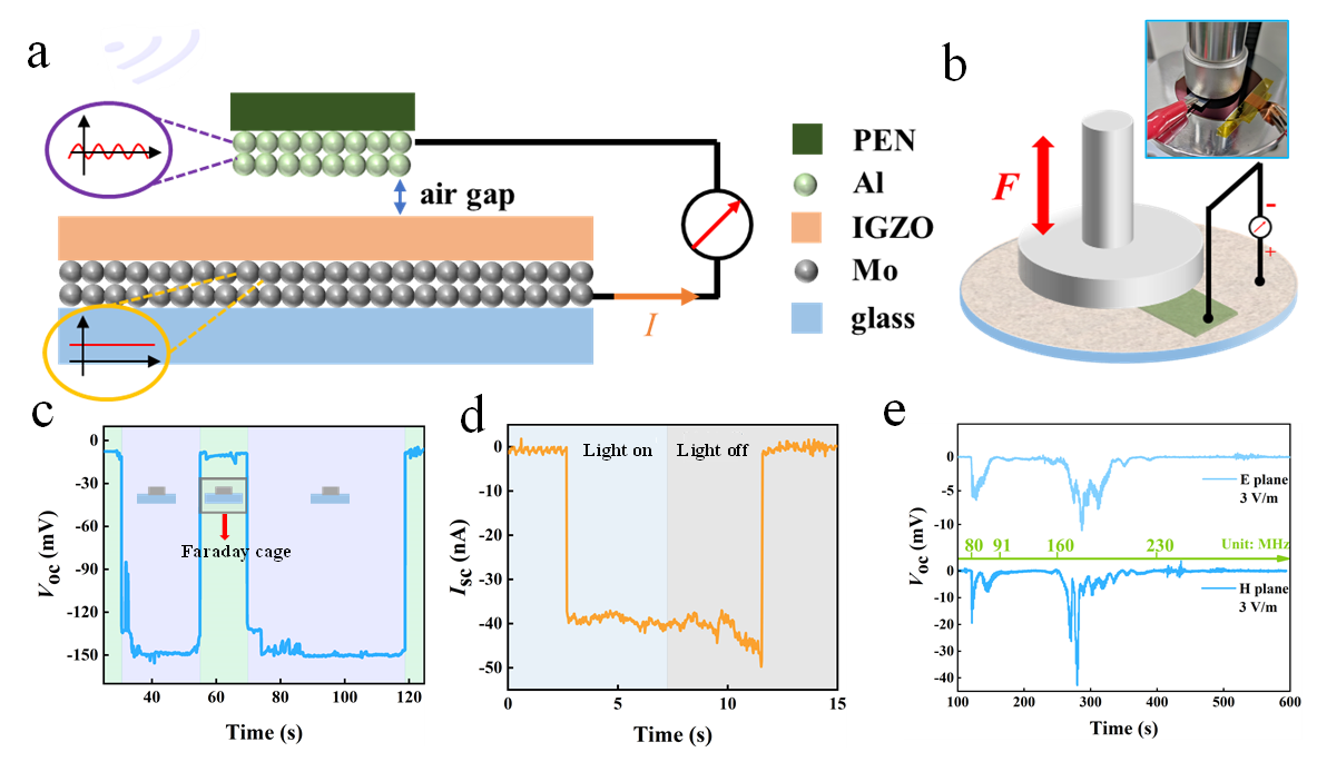 Recently, Zhang Min's research group published a research paper titled "A Mechanically Tunable Electromagnetic Wave Harvester and Dual-modal Detector based on Quasi-static van der Waals Heterojunction" in Nano Energy journal. (DOI: 10.1016 / j. anoen. 2022.107399). In this study, a mechanically adjustable electromagnetic energy collecting device was proposed and realized by applying pressure to van der Waals contact heterojunction. It provides a new perspective for the study of energy conversion mechanism of friction volt DC generator based on van der Waals contact heterojunction.