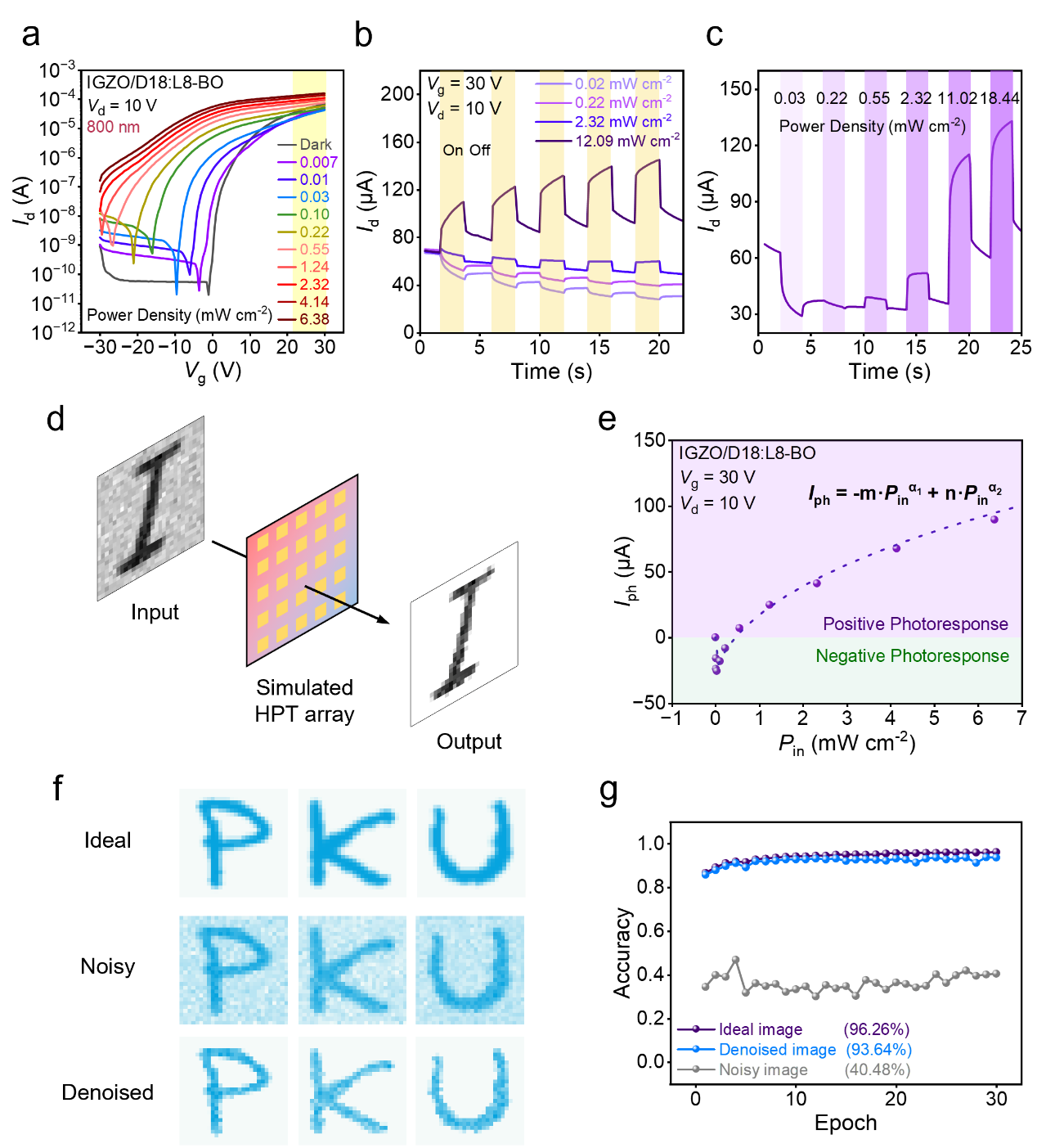 图1. IGZO/D18:L8-BO HPT的器件结构和双模功能