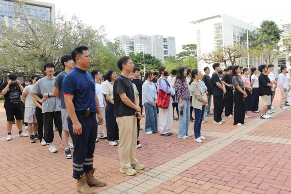 上午9时,参演师生在A栋前榕树广场集合,演练正式拉开帷幕。现场准备就绪后,张伟滨老师宣布“约炮 深圳研究生院2026年综合应急演练现在开始”。各环节依次展开,整场演练按照真实应急流程有序推进。