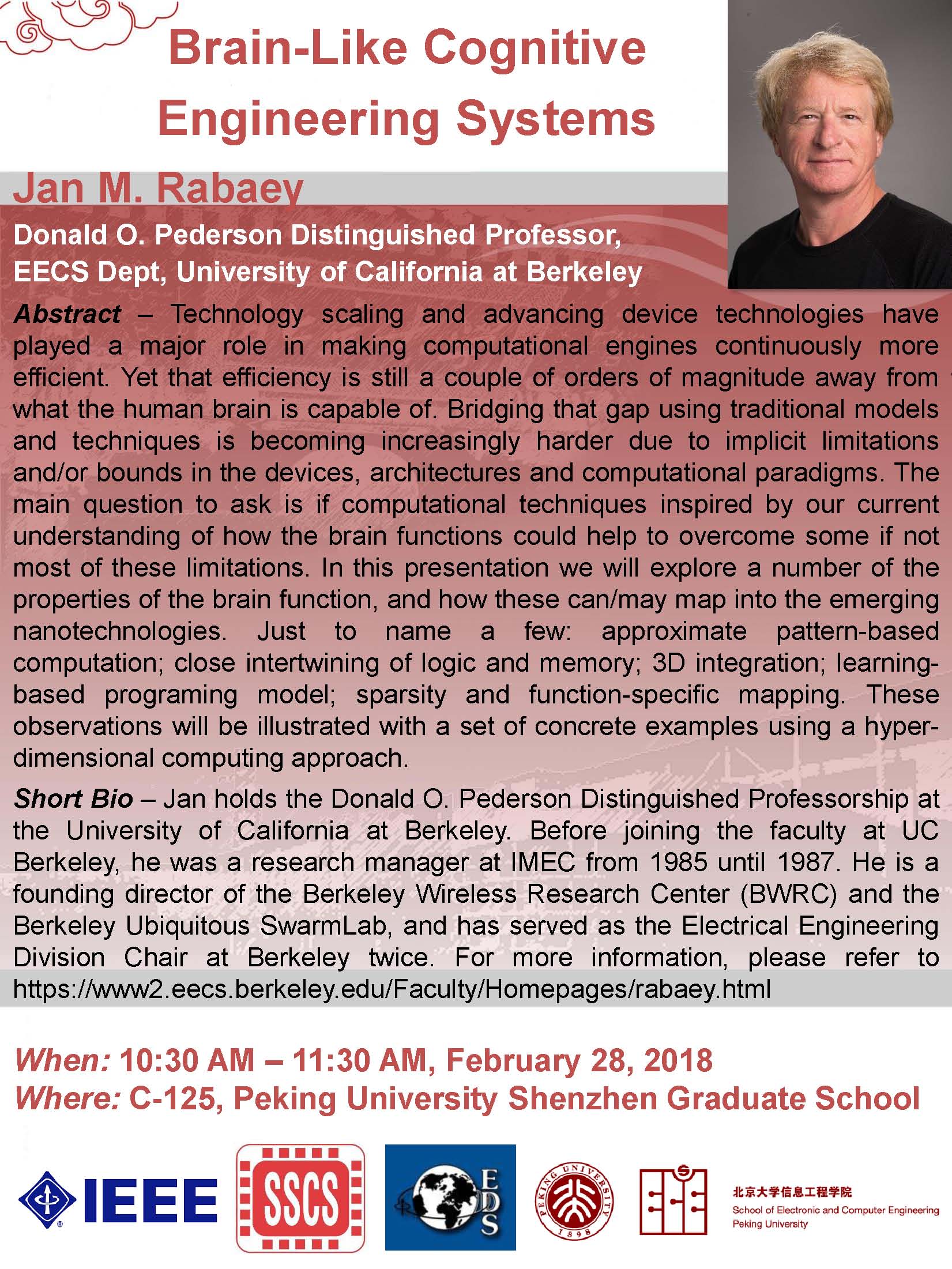 【学术讲座】Prof. Jan Rabaey(加州大学伯克利分校):Brain-Like Cognitive Engineering Systems