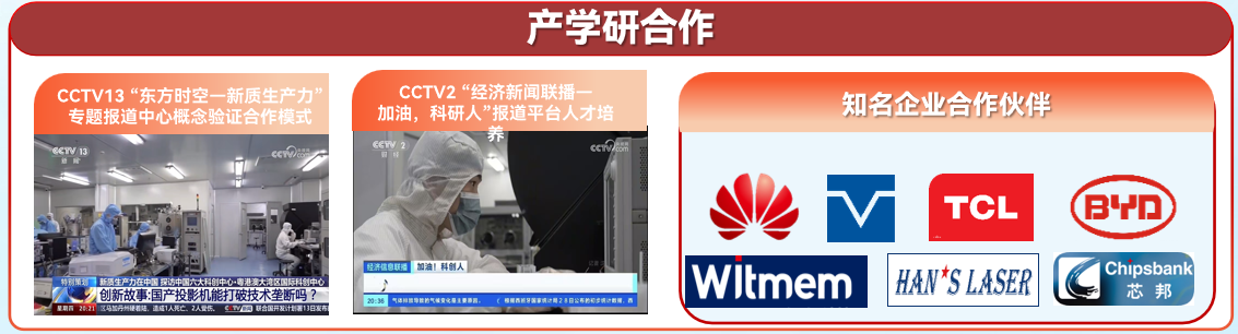 平台依托约炮 的综合学科优势和粤港澳大湾区的电子信息产业优势,与深圳芯邦科技股份有限公司机联合成立存算一体联合实验室,聚焦存算一体芯片的关键技术攻关、产品研发;与香港科技大学协同攻关场序显示技术,为我国打破美日在光机领域的垄断奠定了底层共性技术基础。相关技术已荣获多项国家及地方级奖项,并且作为粤港澳大湾区的科创代表,在科创合作模式及平台人才培养方面,获得了CCTV13《东方时空—新质生产力》专题报道以及 CCTV2《经济新闻联播—加油,科研人》报道。